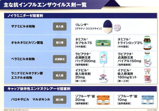 薬の効かない耐性ウィルスは、タミフルでも1/100の割合で出現しますが、感染力が弱いため、あまり問題にしなくてよいと考えられています。