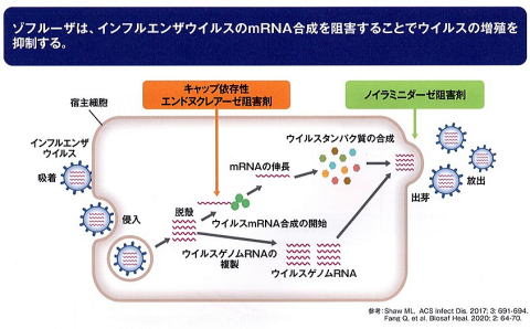 ゾフルーザは2018年2月23日に承認された抗インフルエンザウイルス剤です。このゾフルーザは、タミフルなどのノイラミニダーゼ阻害剤などとは作用機序が全く異なります。