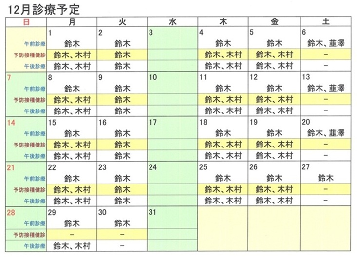 ①年内は、12月30日(火)午前まで診療いたします。病児保育は、12月26日(金)までお預かりします。